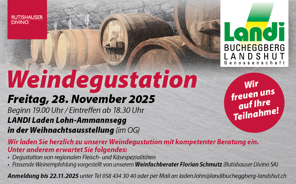 Tel 058 434 30 40 oder per Mail an laden.lohn@landibucheggberg-landshut.ch