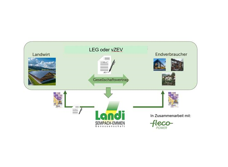Ab 2025 kann über virtuelle Zusammenschlüsse zum Eigenverbrauch (vZEV) und ab 2026 über lokale Elektrizitätsgemeinschaften (LEG) lokal produzierter Solarstrom direkt an Verbraucher verkauft werden. Bei vZEVs kann der Strom an benachbarte Gebäude geliefert werden, die am gleichen Netzanschlusspunkt liegen. Bei LEGs ist der Verkauf von lokalem Strom an alle Verbraucher innerhalb der gleichen Gemeinde möglich.
