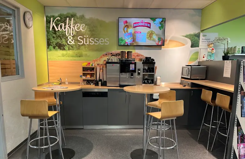 Die Screens befinden sich jeweils beim strak frequentierten Kaffeeecken, wodurch Ihre Werbung besonders viel Aufmerksamkeit erhält.