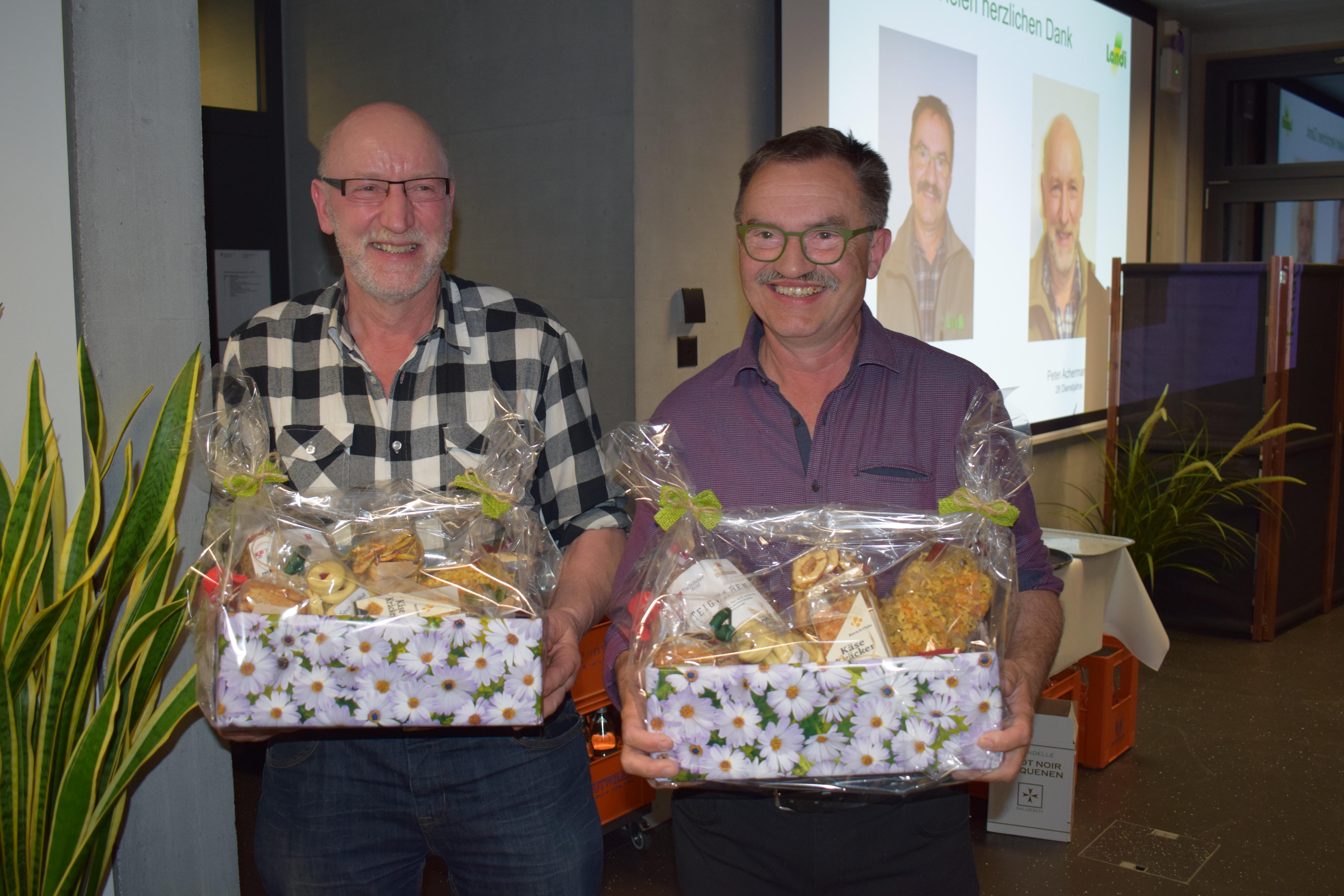 Zwei langjährige Mitarbeiter durften im 2024 in den wohlverdienten Ruhestand. Albert Amschwand startete seine Laufbahn in der LANDI Obwalden und hat den Zusammenschluss mit der LANDI Nidwalden zur LANDI Unterwalden AG tatkräftig unterstützt. So war er seither im Agrarbereich tätig und durfte nach insgesamt 43 Dienstjahren in den vorzeitigen Ruhestand. Als Nachfolger für Albert Amschwand wurde man in der Person von Eric Preisig fündig. Eric unterstützt nun das Team Alpnach im Agrarbereich und ist vor allem im Aussendienst unterwegs. Für 28 Dienstjahre wurde Peter Achermann geehrt. Seine Arbeitsstelle war der LANDI Laden in Sarnen, wo er praktisch alle "seine Kunden" kannte und er das Team mit grossem Engagement all die ganzen Jahre wertvoll unterstützte.