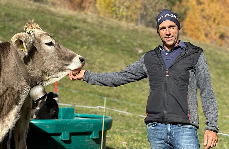 Armin Margreth wusste schon als Kind, dass er Landwirt werden wollte. Den Hof, der mitten im Dorf Lain in der Nähe der Lenzerheide liegt, haben bereits sein Vater, sein Grossvater und sein Urgrossvater geführt. Armin Margreth absolvierte die landwirtschaftliche Schule Plantahof in Landquart (GR) und bildete sich anschliessend als Betriebsleiter und Meisterlandwirt weiter. «Die Arbeit mit Tieren in unserer wunderschönen Natur ist eine Herzensangelegenheit», sagt der Landwirt strahlend. Er, seine Frau Rita und die drei heute erwachsenen Kinder führten den Milchviehbetrieb mit Aufzucht des eigenen Jungviehs ab 1995 für über 15 Jahre weiter und liessen ihn für Bio Suisse zertifizieren. Die Rentabilität liess jedoch zu wünschen übrig. Unter anderem wegen der Milchproduktion an drei verschiedenen Standorten – eine im Dorf, eine auf dem Maiensäss und eine auf der Alp. Da das Kraftfutter für Milchkühe in den Bergen nicht wächst, musste Armin Margreth dieses stets zukaufen. Zudem machte der Familie der sinkende Milchpreis zu schaffen.