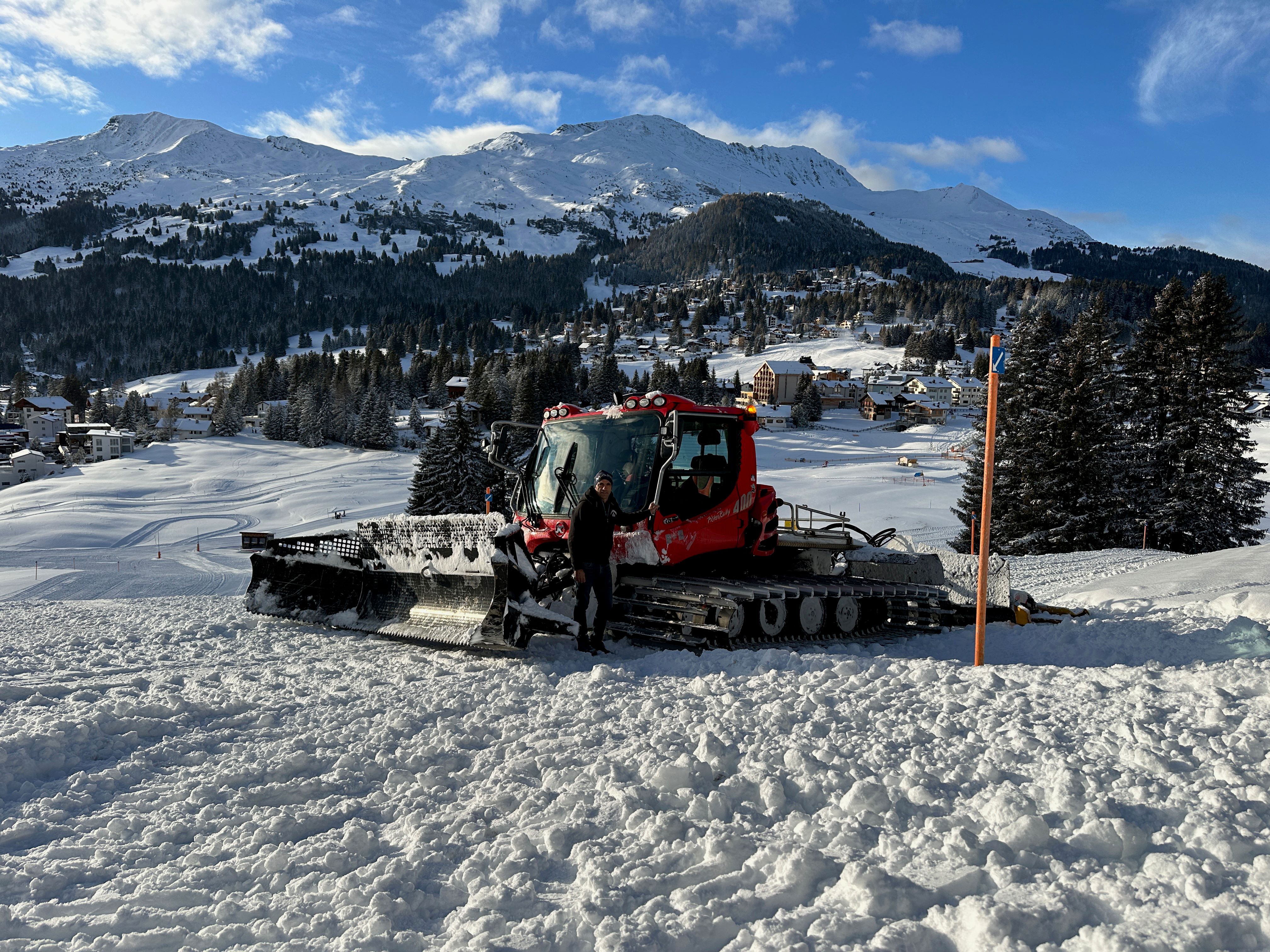 Piste macht er schon seit über zehn Jahren. Und was eine gute Piste ausmacht, weiss er selbst am besten, schliesslich war er über 20 Jahre lang Skilehrer. Noch heute geniesst er an schönen Wintertagen beim Skifahren eine kurze Auszeit zusammen mit seiner Frau. «Ich bin enorm dankbar darüber, wie flexibel wir sind, um die Arbeiten auf dem Hof, unsere Zusatzjobs und unsere Freizeit unter einen Hut zu bringen.»